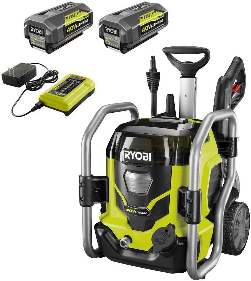 Amazon Com Ryobi Ry40pw01dg9 1 500 Psi 1 2 Gpm 40 Volt Cold Water Cordless Electric Pressure Washer With Two 5 0 Ah Batteries And Charger Included Garden Outdoor