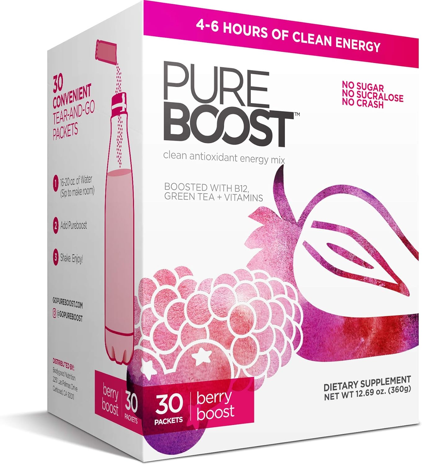 Amazon Com Pureboost Clean Energy Drink Mix Immune System Support Sugar Free Energy With B12 Multivitamins Antioxidants Electrolytes Berry Boost 30 Count Health Personal Care